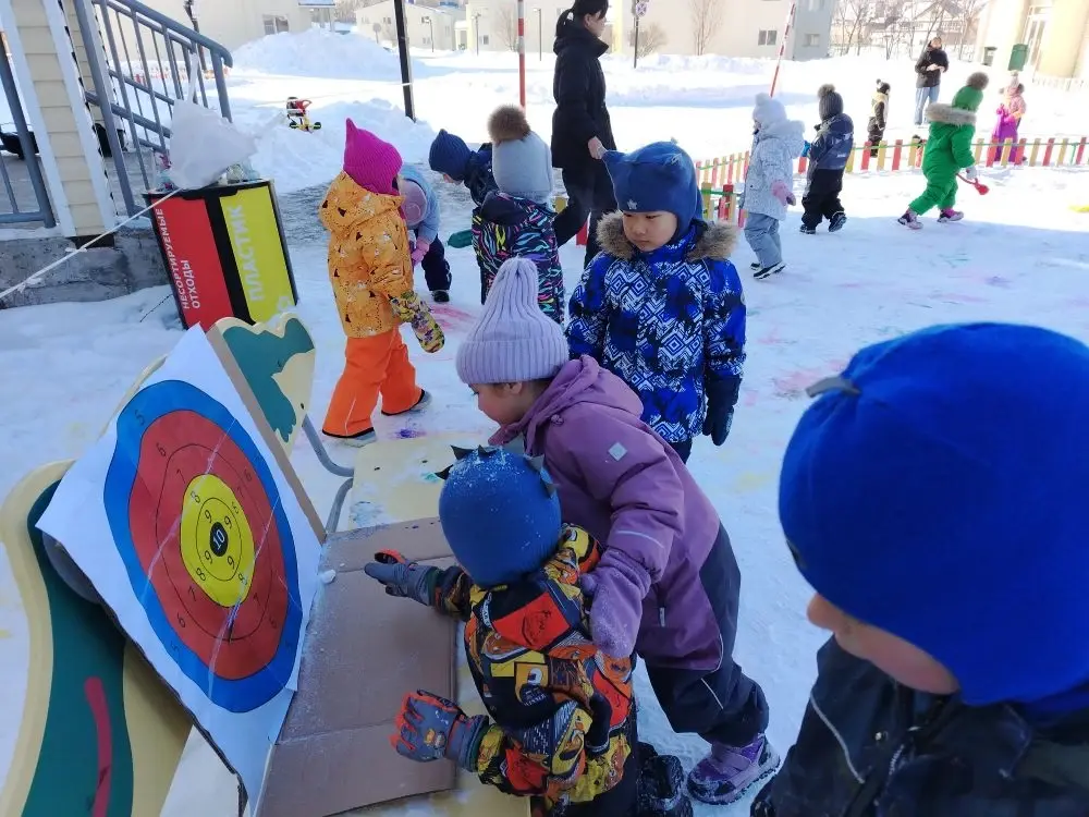 Тем, кому было недостаточно творческих занятий, было приготовлено особое соревнование по метанию снежков в мишень. Вооружившись комками снега, дети испытывали точность глаза и силу руки, соревнуясь в искусстве попадать точно в круглую цель. Каждая удачная попытка вызывала радостные возгласы, подогревая интерес к игре еще больше.
