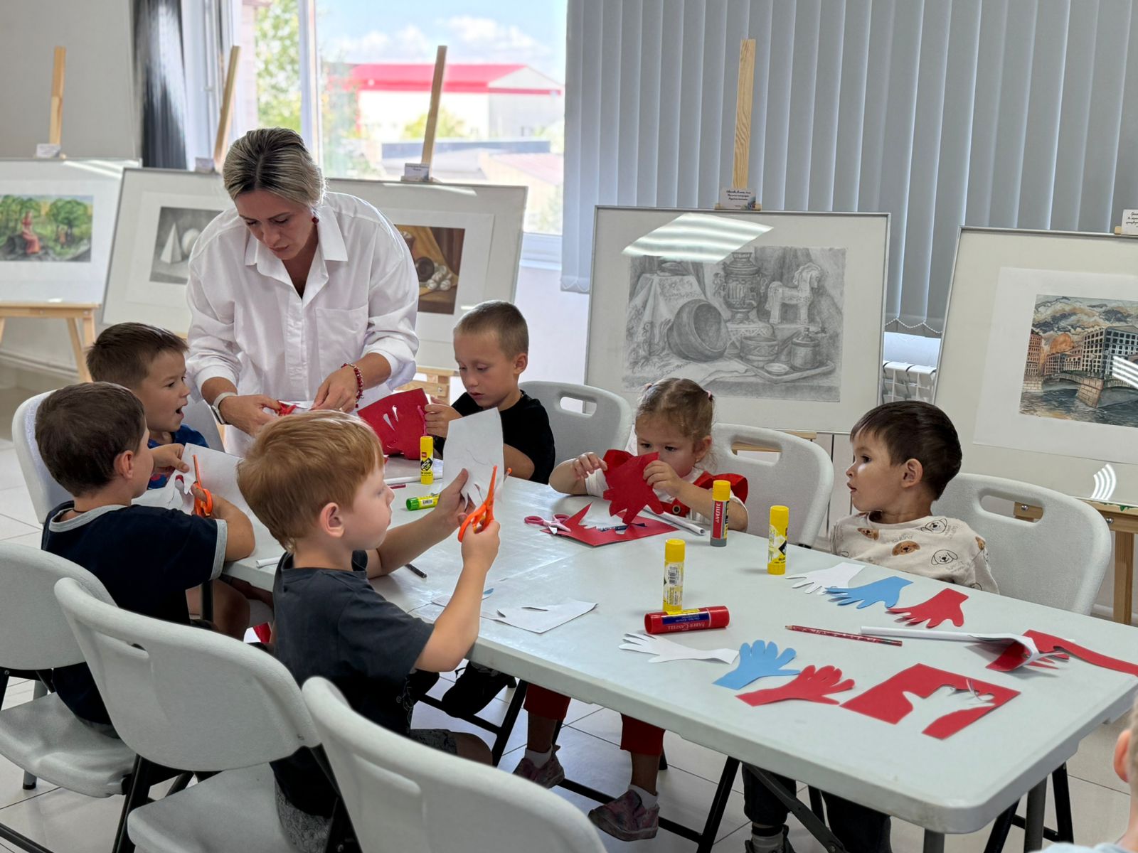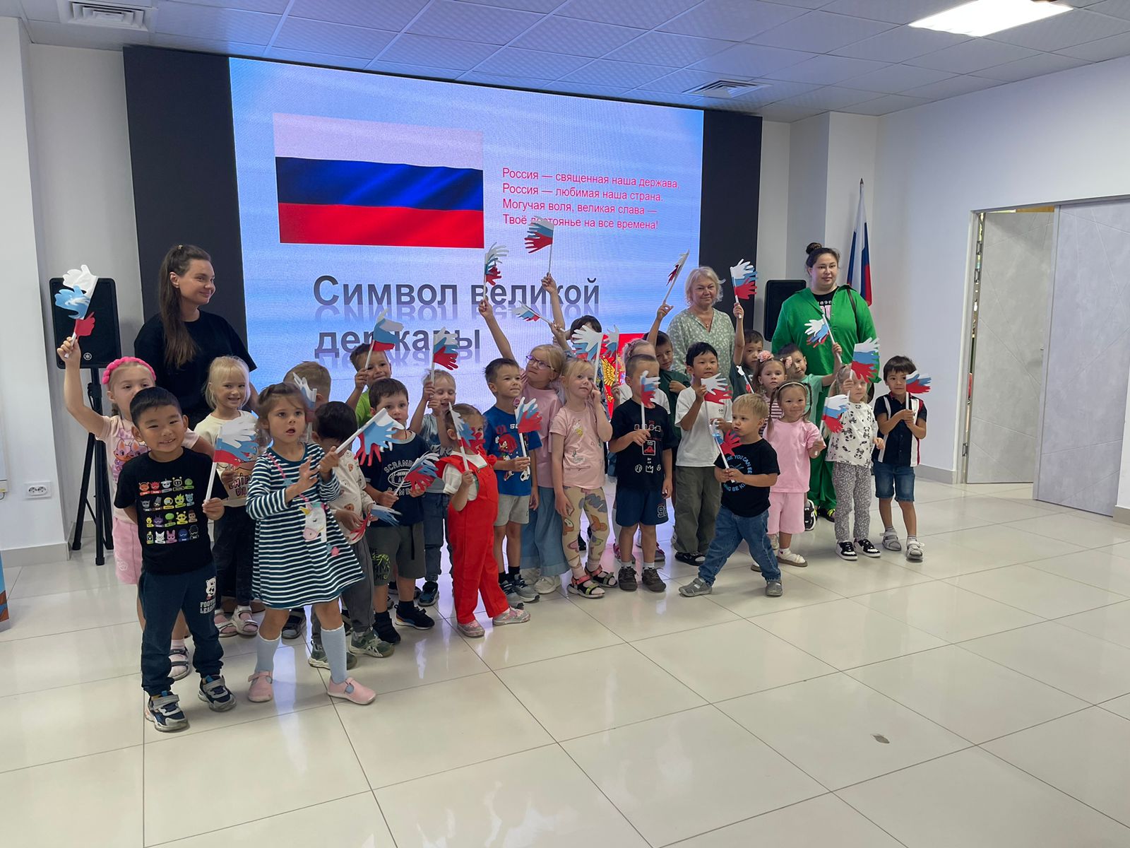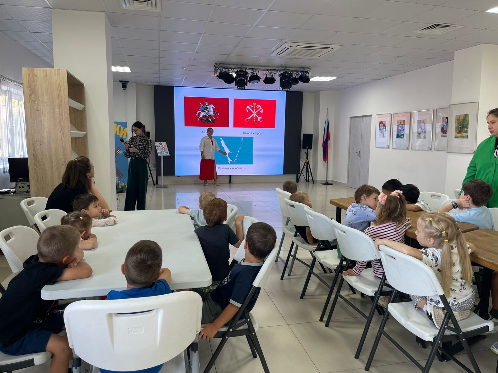 После экскурсии детей ждал мастер-класс, посвященный Дню российского флага. Сначала им рассказали об истории российского триколора, его символике, мировых флагах и флаге Сахалинской области. Затем предложили создать собственный маленький флаг.