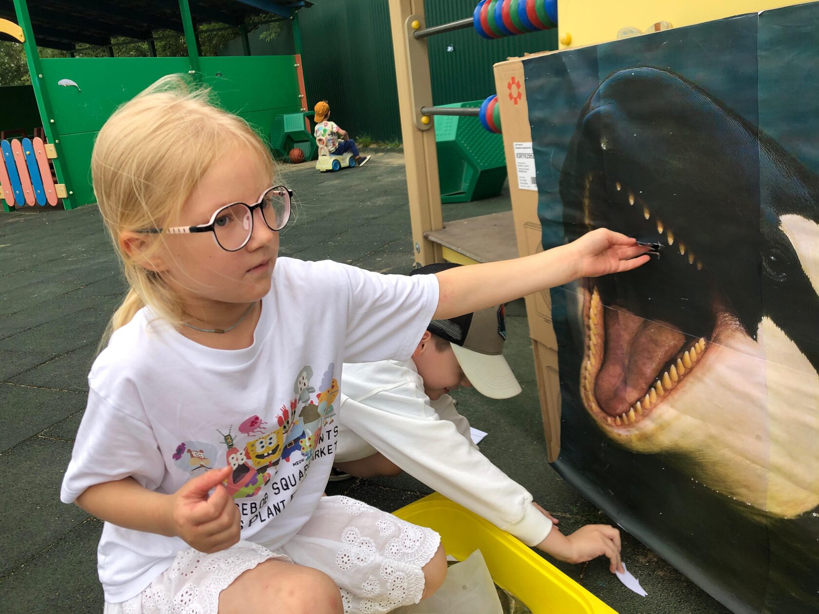 Прогулка завершилась энергичной песней про китов на английском языке. Дети не только пели, но и сопровождали песню движениями, изображая морских обитателей.