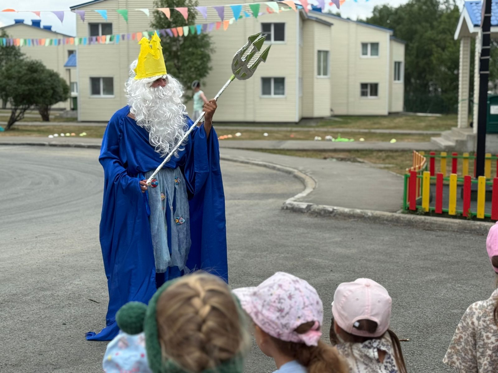 Рано утром дети узнали, что сегодня их посетит сам Нептун. В благодарность за участие в поисках волшебного трезубца царь морской решил подарить ребятам волшебный праздник.