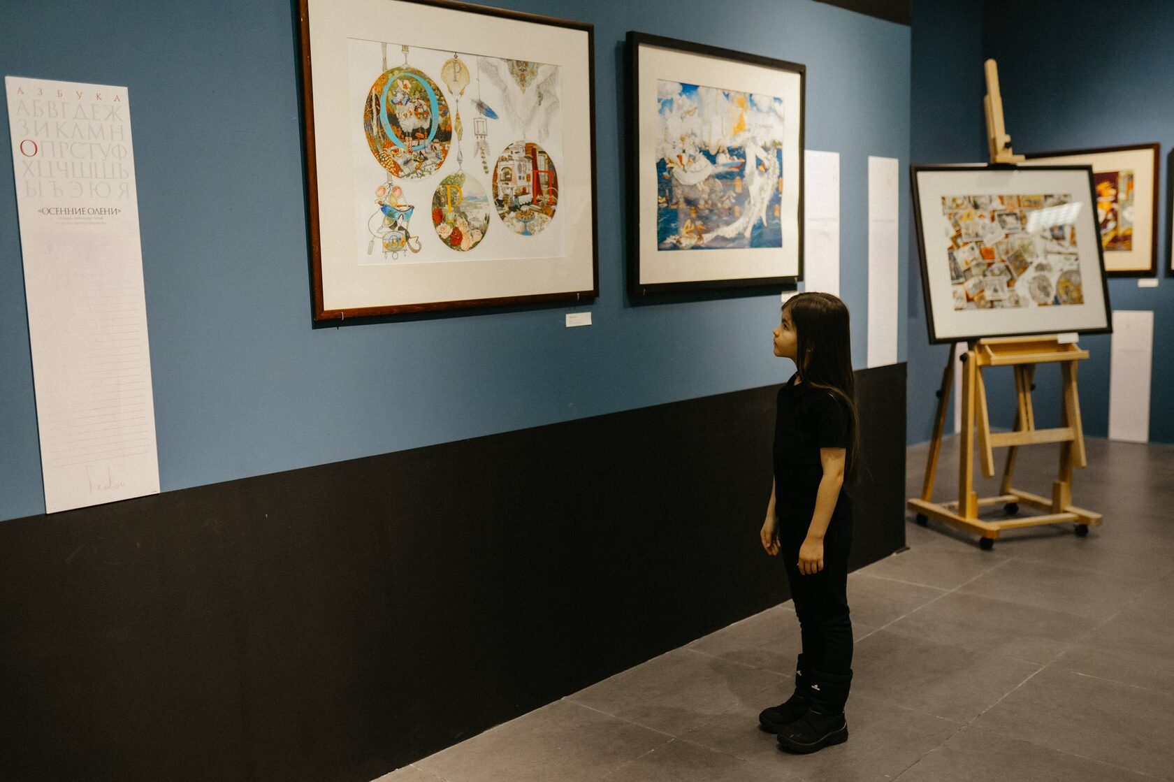 В основе экспозиции — грандиозный проект петербургского (https://petrfrolov.com/galereja/azbuka/) художника Петра Фролова. Сразу оговорюсь: это произведение не имеет аналогов ни в России, ни за рубежом. Это не просто «буквы в картинах», не стандартный иллюстрированный алфавит и не сухой эксперимент со шрифтами. Петр Фролов создал многомерные словесные миры, где оживают истории предметов, связанных между собой сложными, порой таинственными отношениями начальных букв.